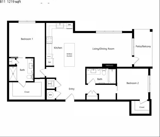 1 Bed, 1 Bath, 688 sq ftModel Gallery