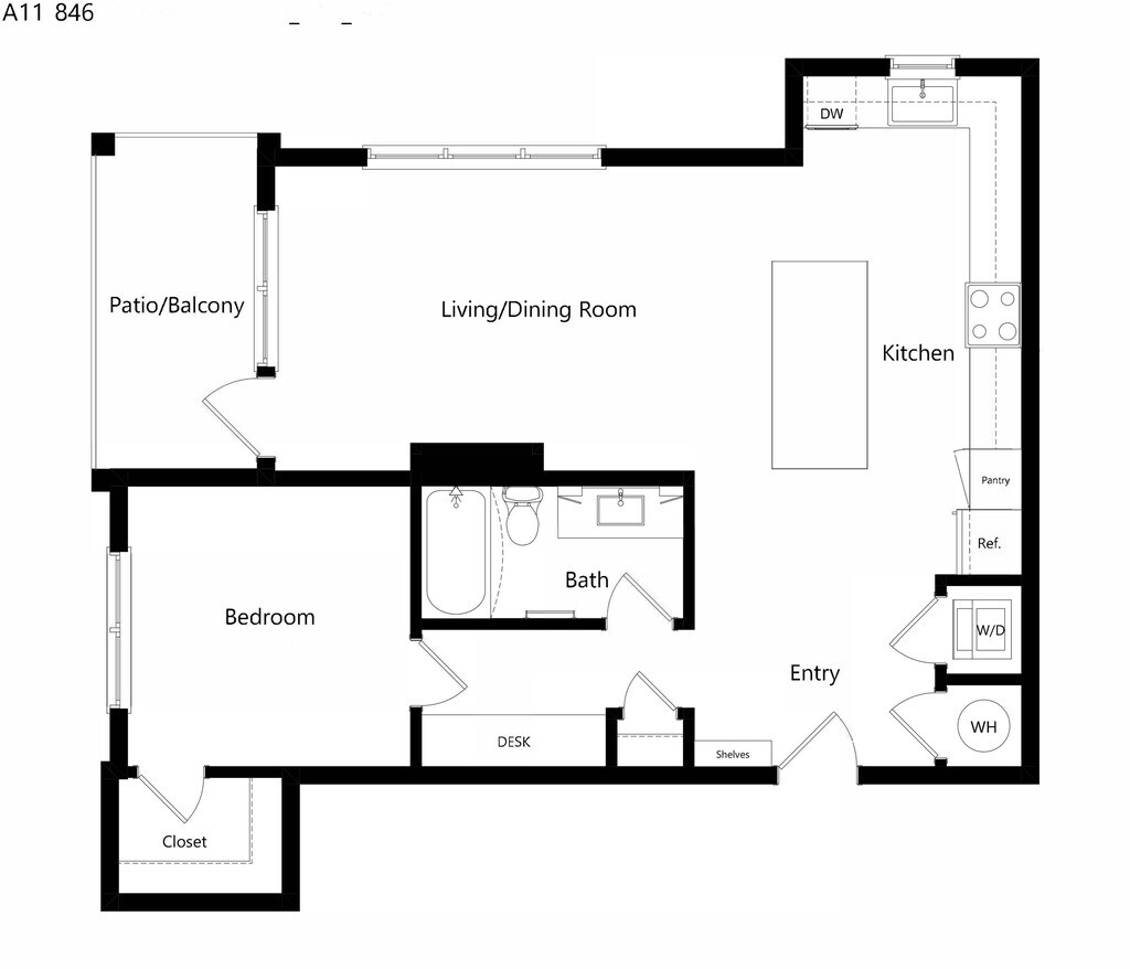 Apartment Model: A1-L ALT1 Bedroom, 1 Bath, 688 sq ftUnavailable![]()