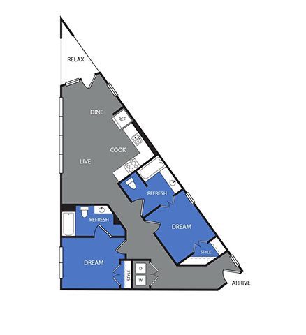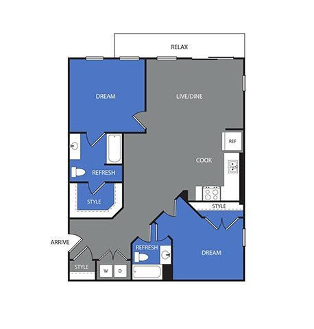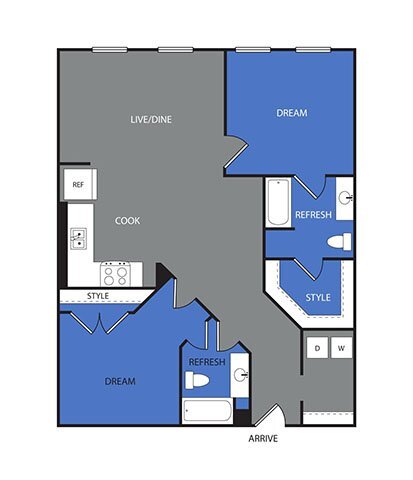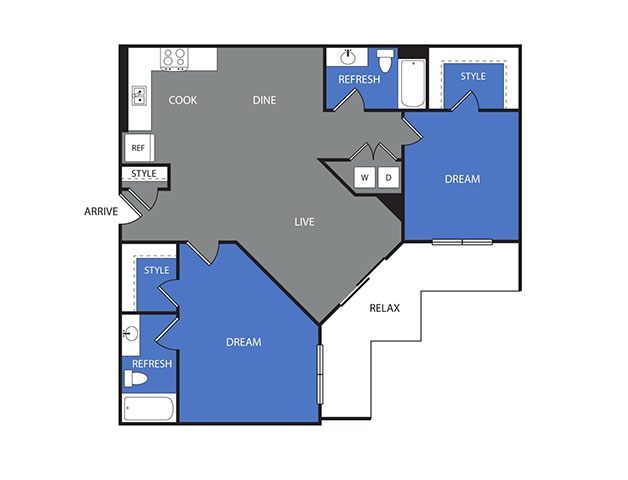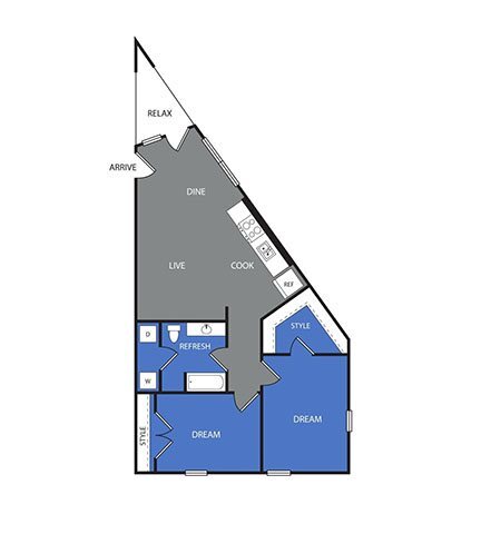 1 Bed, 1 Bath, 691 sq ftAvailable NowModel Gallery