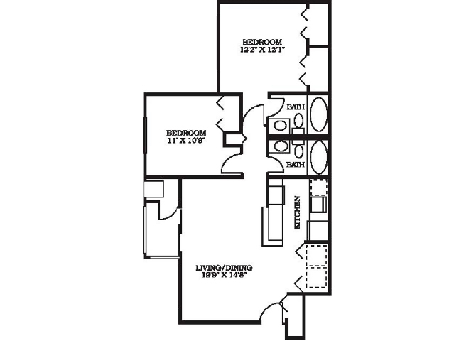 Apartment Model: 2 Bed L$2,9752 Bedroom, 2 Bath, 921 sq ftAvailable Now![]()