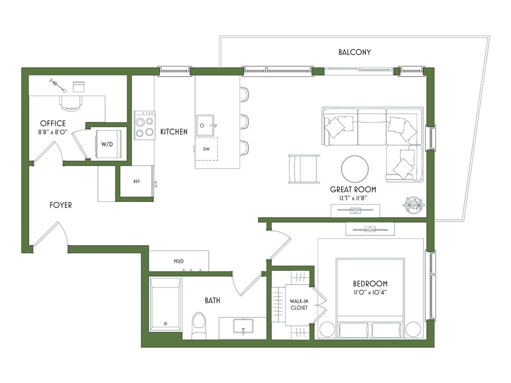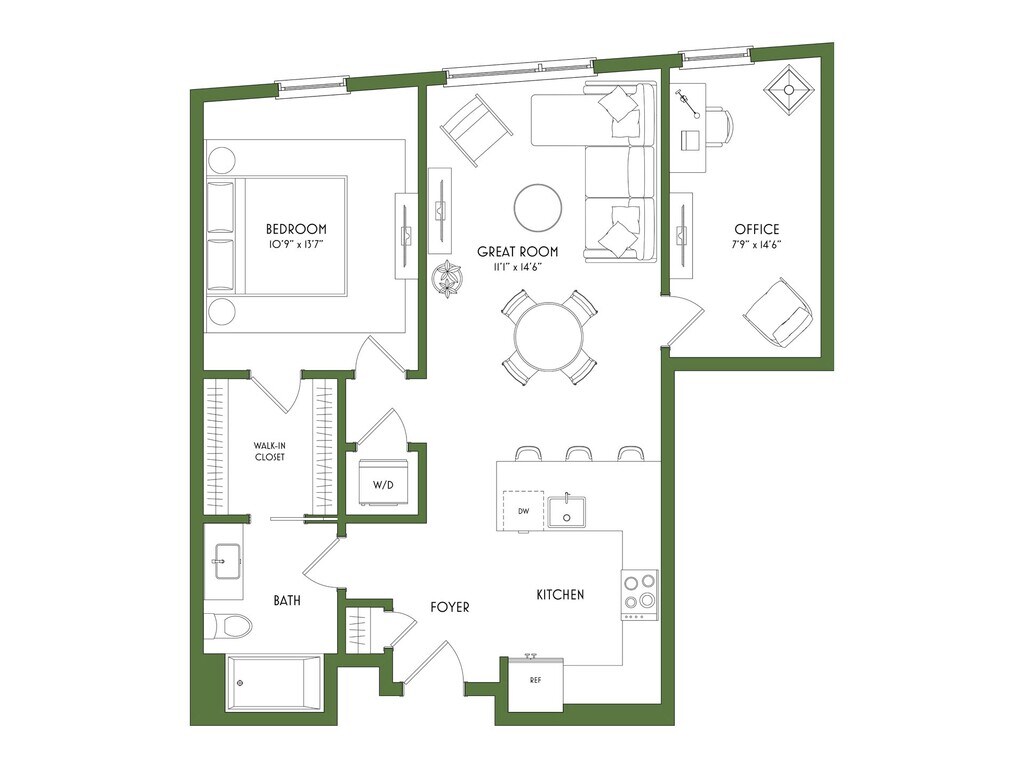 Studio, 1 Bath, 533 sq ftAvailable NowLargest StudioThis is the largest Studio at this PropertyModel Gallery