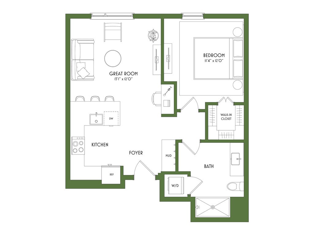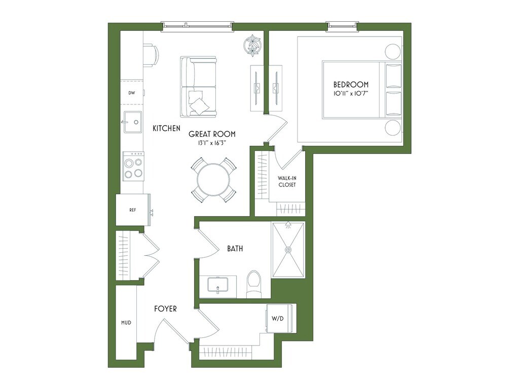 Studio, 1 Bath, 528 sq ftAvailable NowModel Gallery