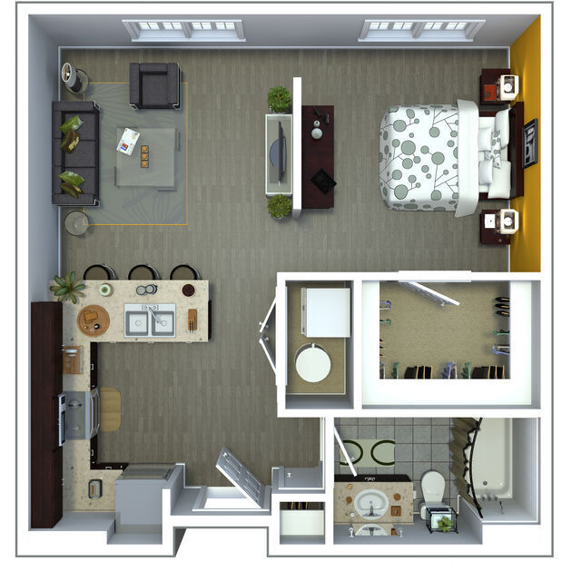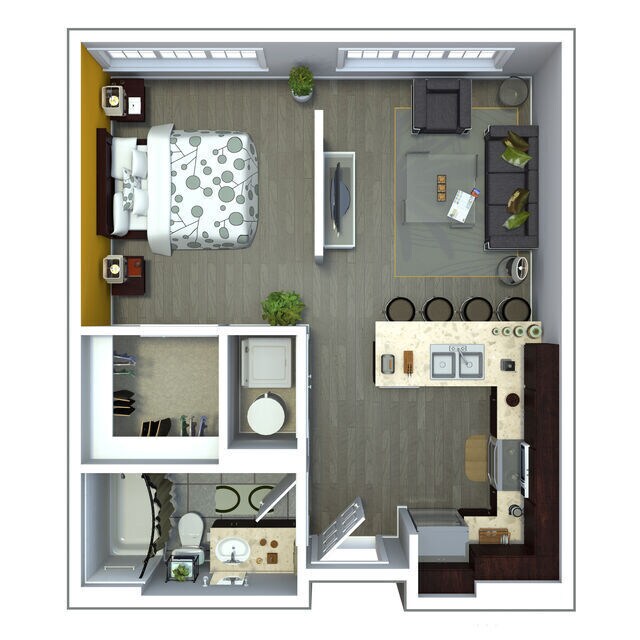 Studio, 1 Bath, 495 sq ftAvailable NowModel Gallery