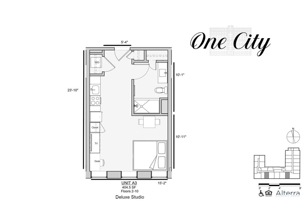 One City offers Studio to 2 Bedroom apartments starting from $1,064 and having 318–845 sq ft. Here is the current pricing and availability: