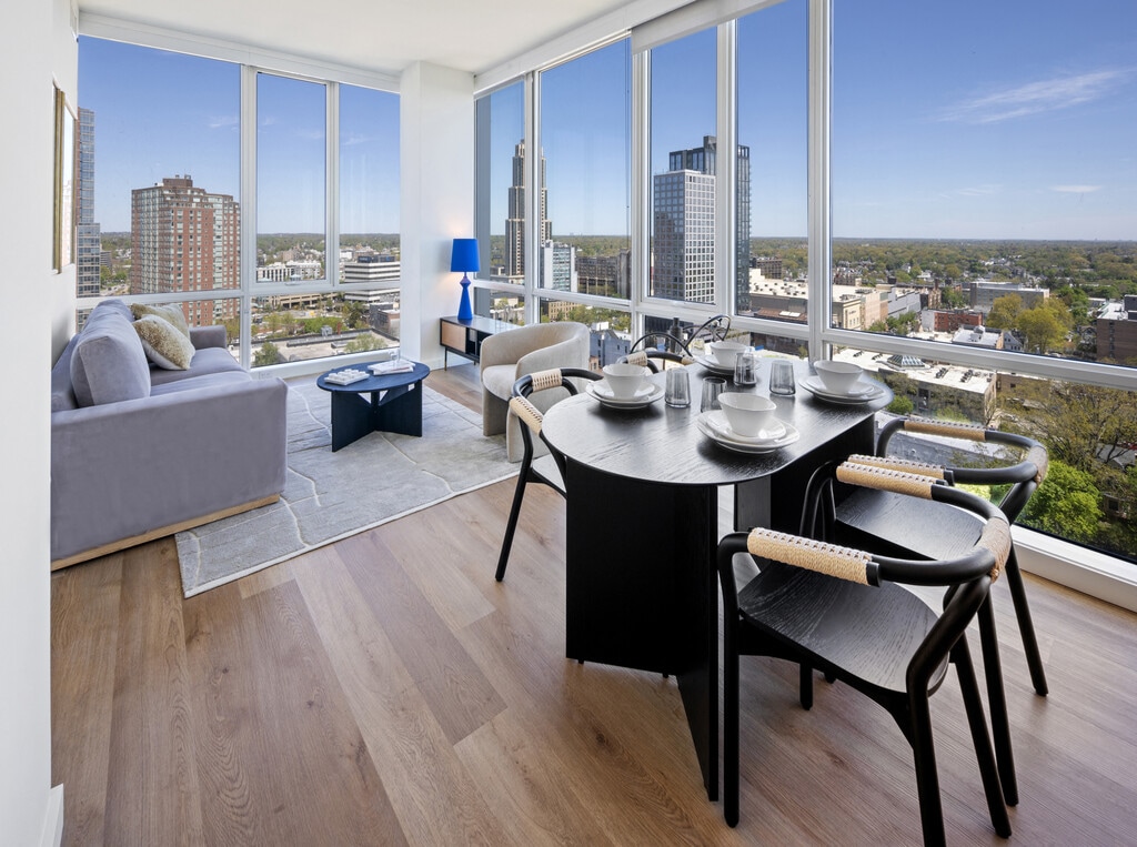 One Clinton Park is a striking residential development in New Rochelle, blending sleek silver metal and cool blue glass to redefine the skyline. With expansive views and abundant natural light, it elevates modern living in this historic town. Residents enjoy exceptional service, thoughtful design, and unmatched access to the vibrant waterfront and downtown. One Clinton Park also boasts the most comprehensive indoor and outdoor amenities program in the region, offering a truly unparalleled lifestyle. Check out our studio, one, two, and three- bedroom apartment homes today.