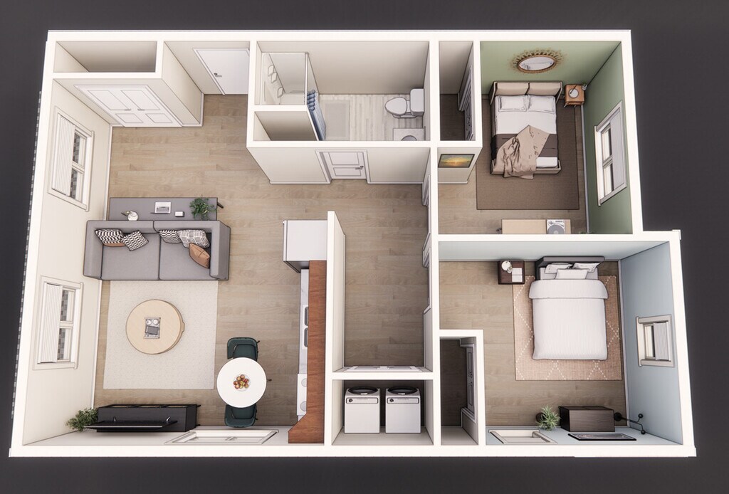 2 Beds, 1 Bath, 808-834 sq ftModel Gallery