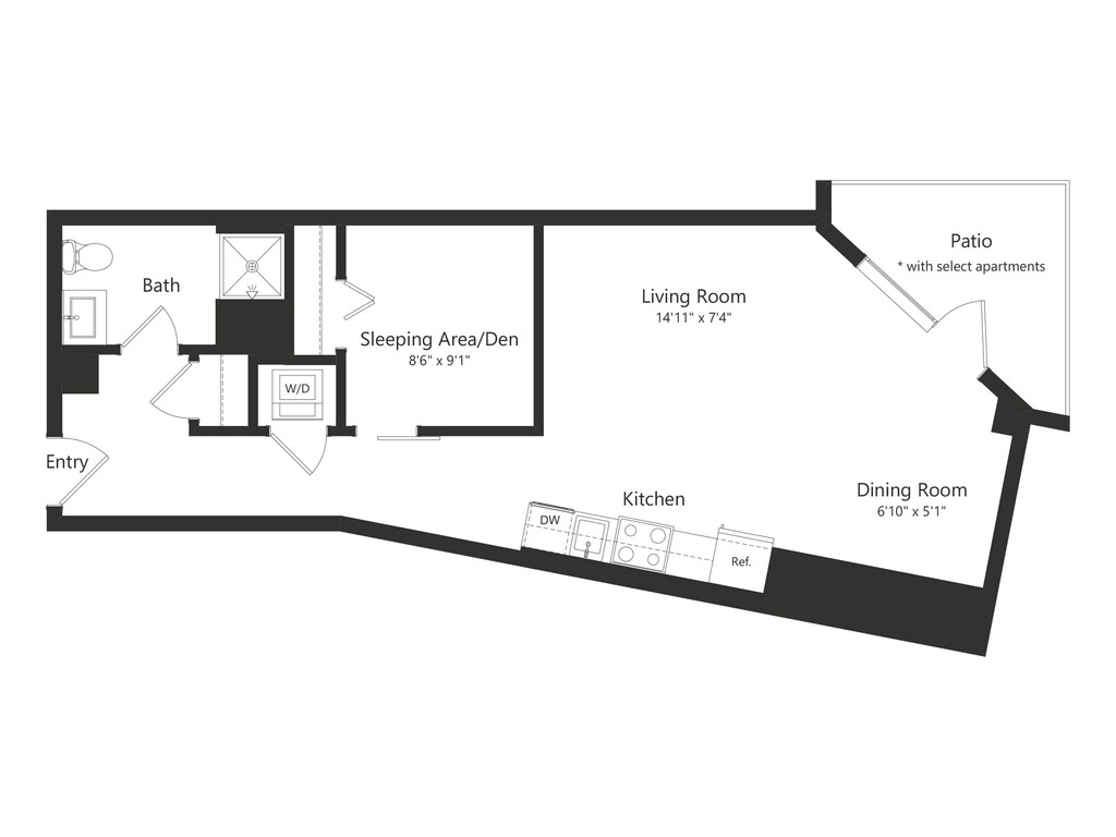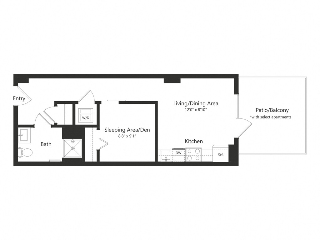 Apartment Model: S1DFrom $3,170Studio, 1 Bath, 485 sq ftAvailable NowFloor plans are artist's rendering. All dimensions are approximate. Actual product and specifications may vary in dimension or detail. Not all features are available in every rental home. Prices and availability are subject to change. Base rent is based on monthly frequency. Additional fees may apply, such as but not limited to package delivery, trash, water, amenities, etc. Deposits vary. Please see a representative for details.