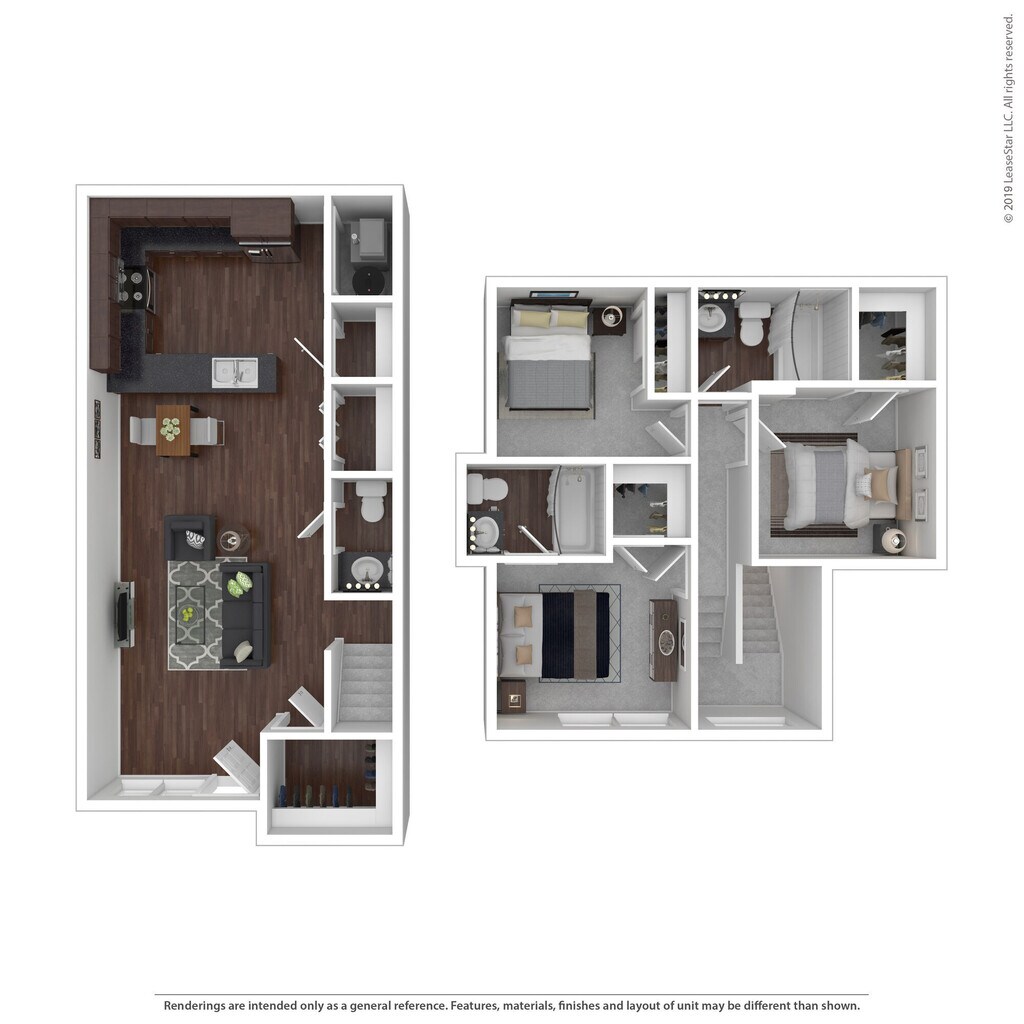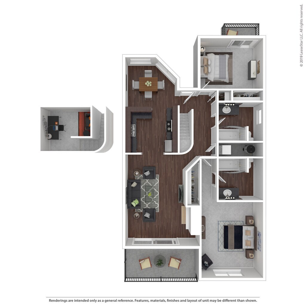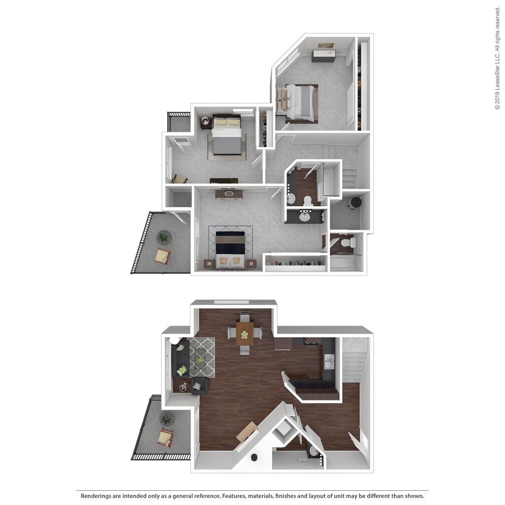1 Bed, 1 Bath, 729 sq ftModel Gallery