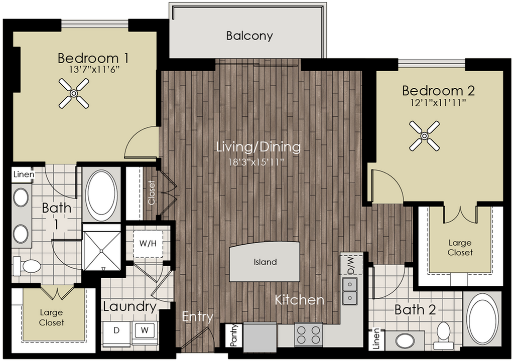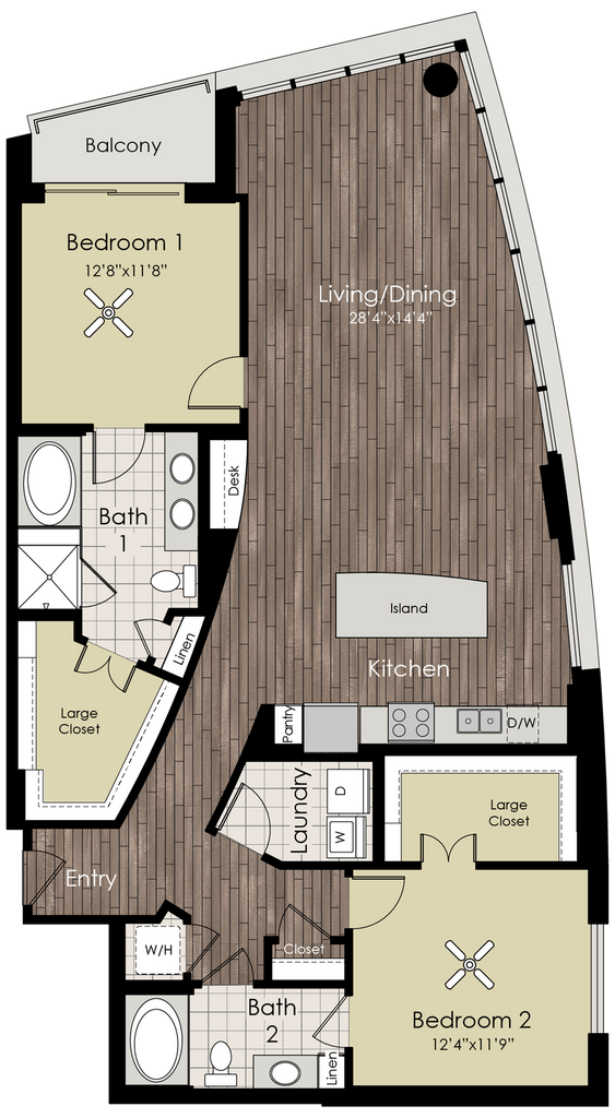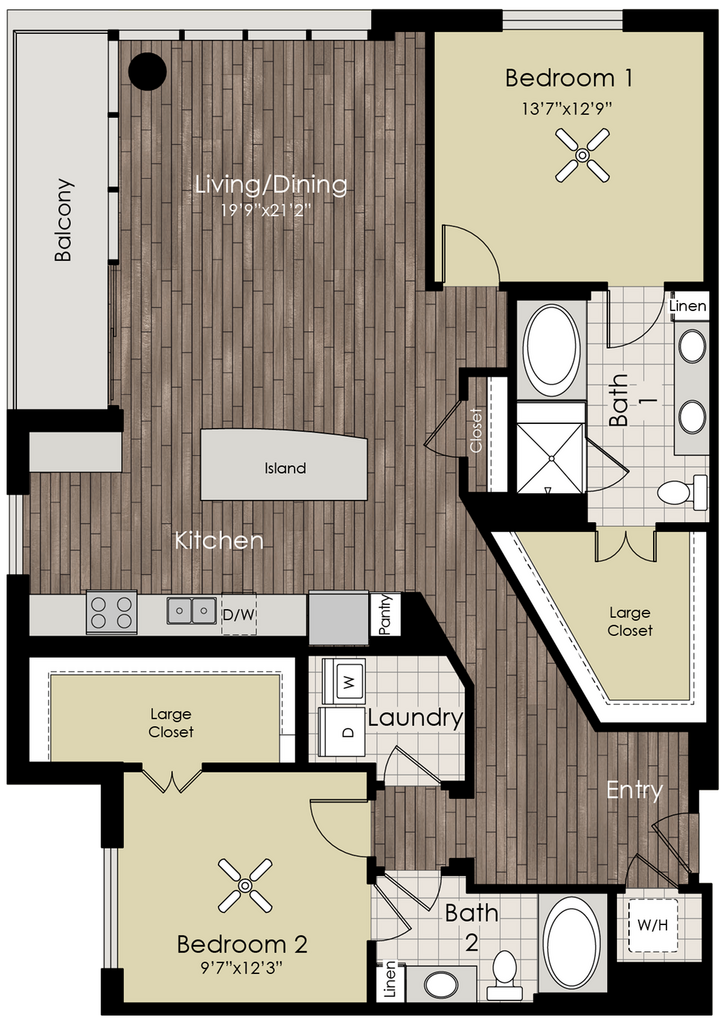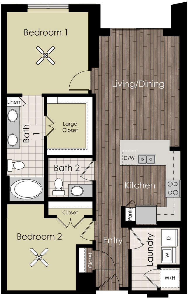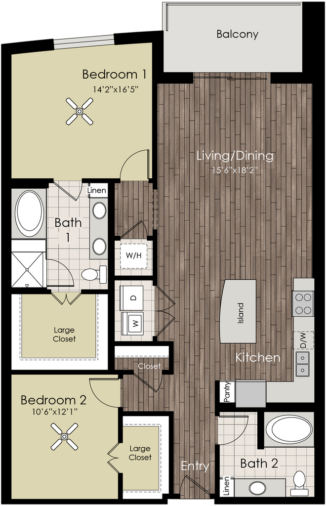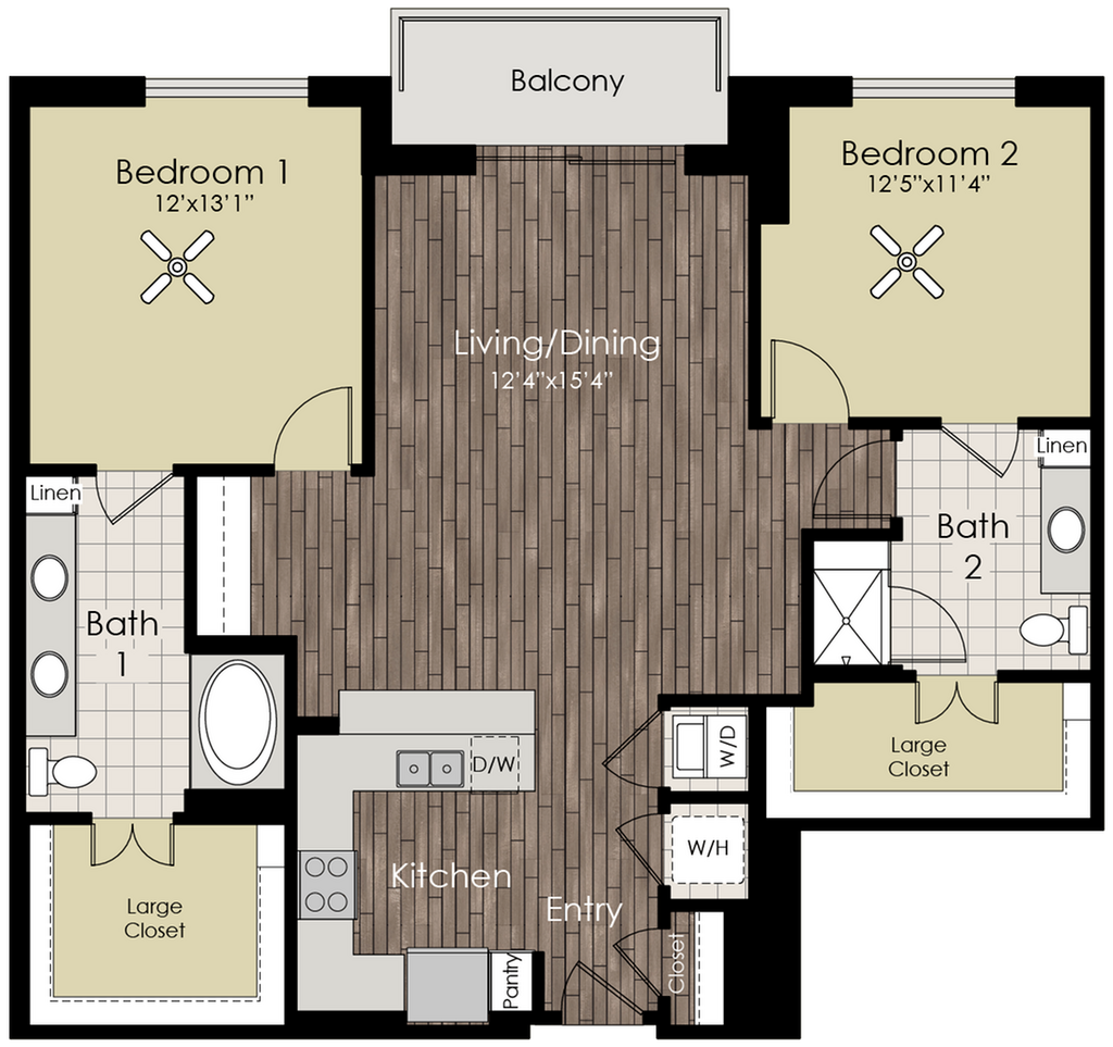 Apartment Model: A2.1From $2,2551 Bedroom, 1 Bath, 728 sq ftAvailable Now![]()