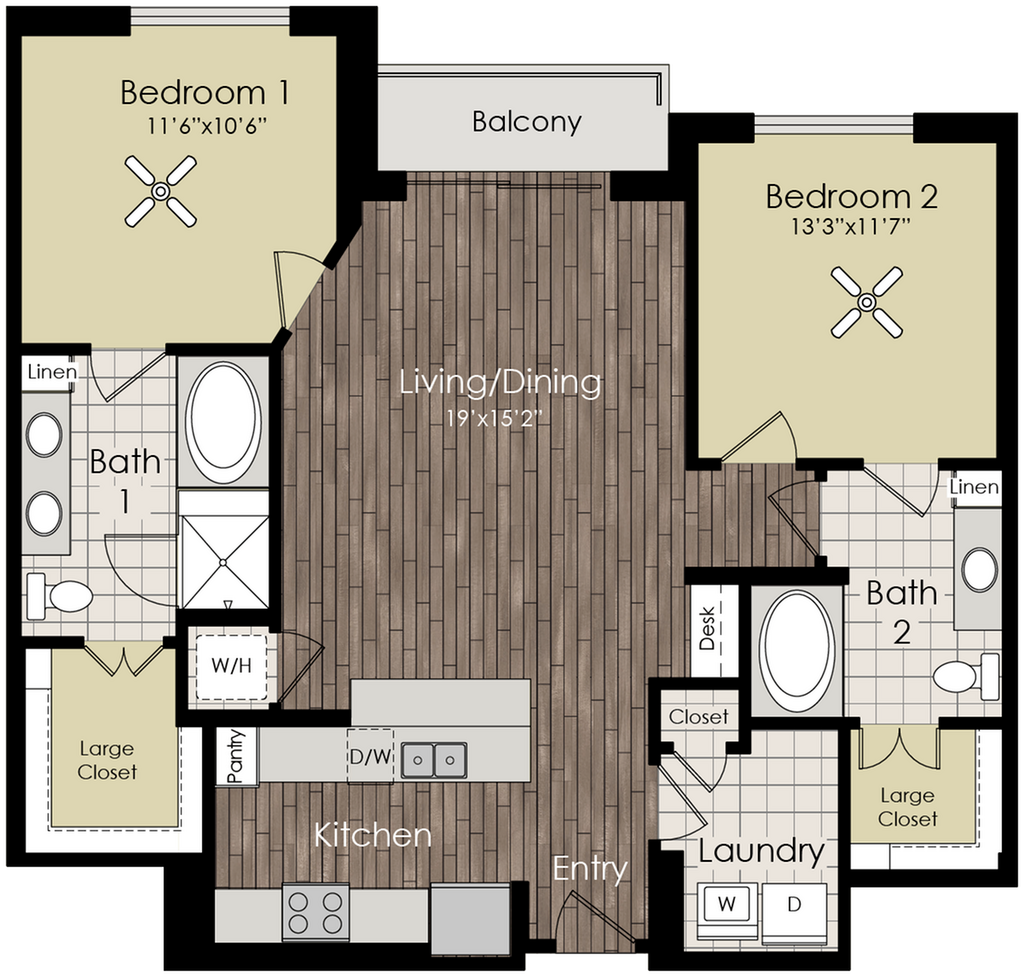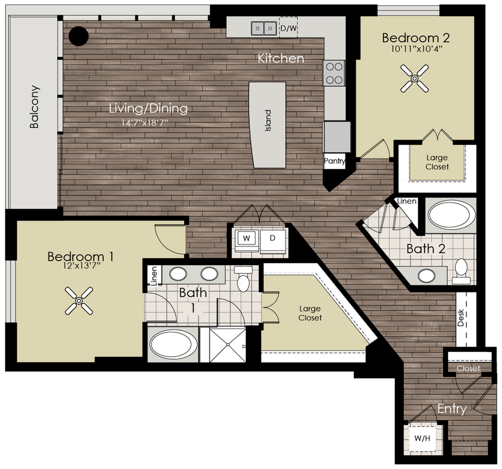 1 Bed, 1 Bath, 889 sq ftAvailable NowModel Gallery