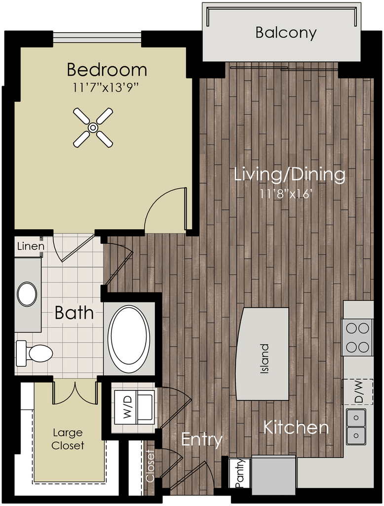 1 Bed, 1 Bath, 728 sq ftAvailable NowModel Gallery