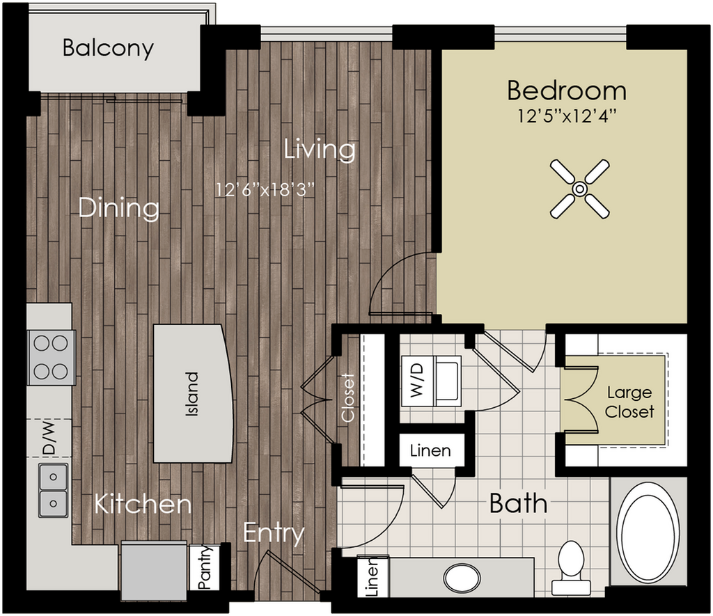 Apartment Model: A5From $1,9561 Bedroom, 1 Bath, 825 sq ftAvailable Now![]()