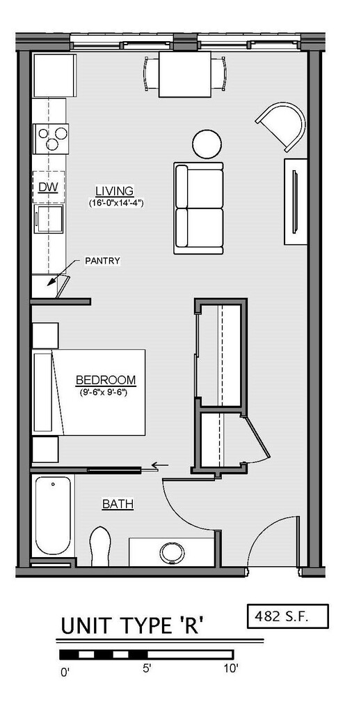Apartment Model: R Floor PlanStudio, 1 Bath, 482 sq ftUnavailableFloorplansPhotos![]()