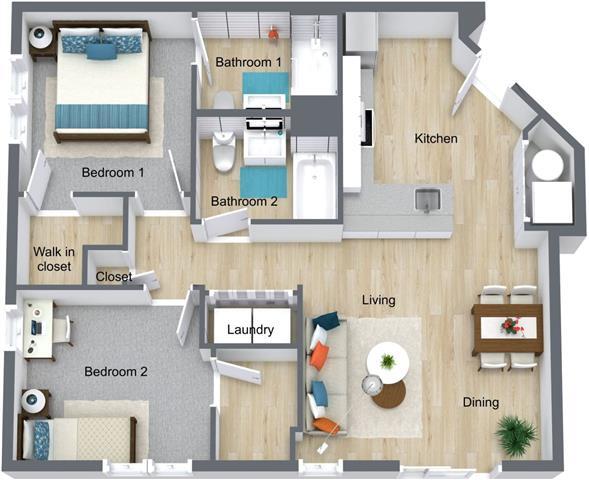 2 Beds, 2 Baths, 918-987 sq ftPlus FeesAvailable NowModel Gallery