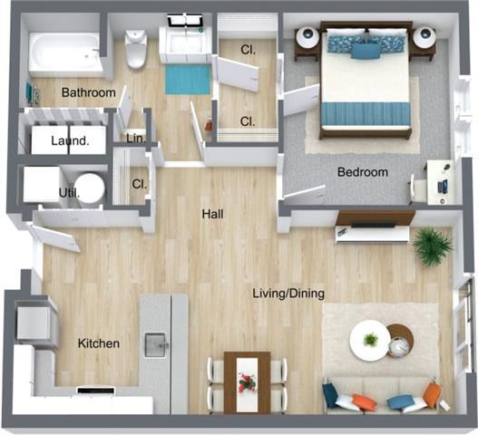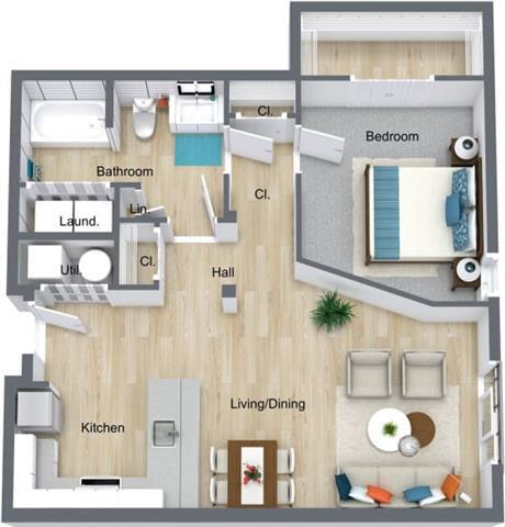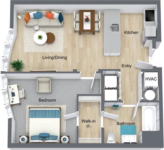 1 Bed, 1 Bath, 711-851 sq ftPlus FeesAvailable NowModel Gallery
