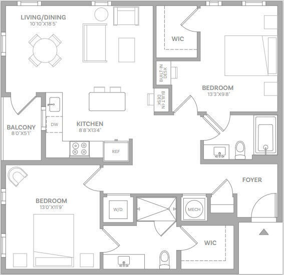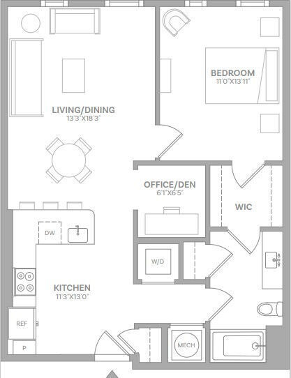 1 Bed, 1 Bath, 671 sq ftAvailable NowModel Gallery