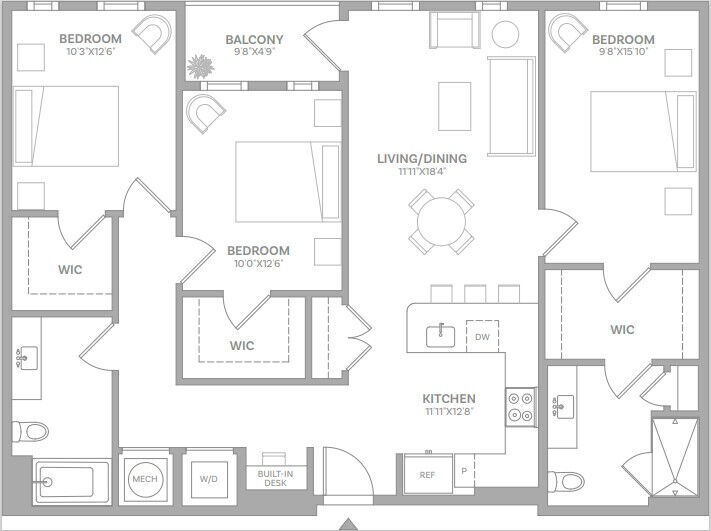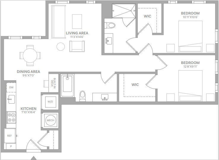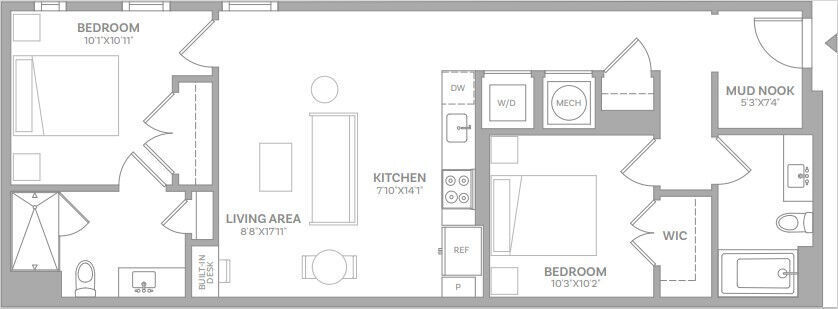 1 Bed, 1 Bath, 690 sq ftAvailable NowModel Gallery