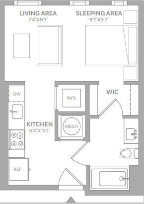 Studio, 1 Bath, 425 sq ftAvailable NowModel Gallery