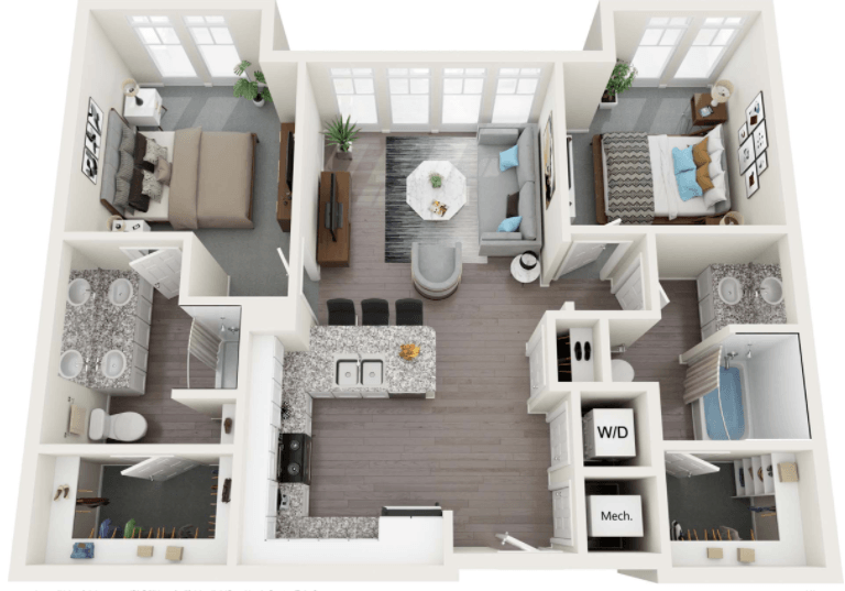2 Beds, 2 Baths, 977 sq ftModel Gallery