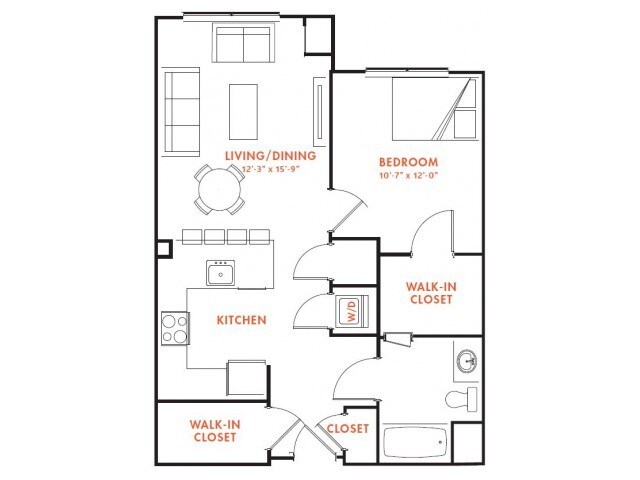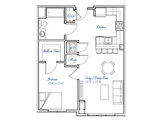 Apartment Model: 1-A1B1 Bedroom, 1 Bath, 592 sq ftUnavailable![]()