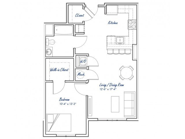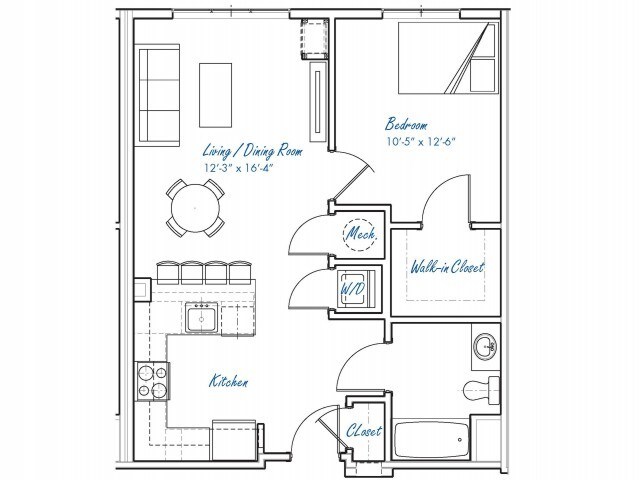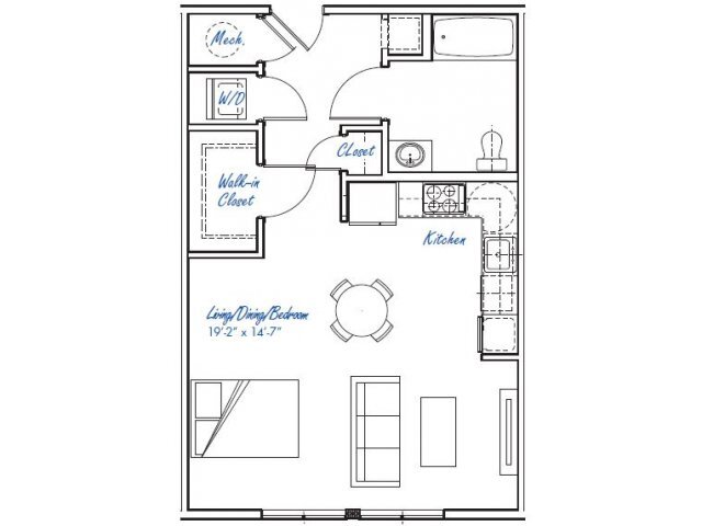 Studio, 1 Bath, 590 sq ftLargest StudioThis is the largest Studio at this PropertyModel Gallery