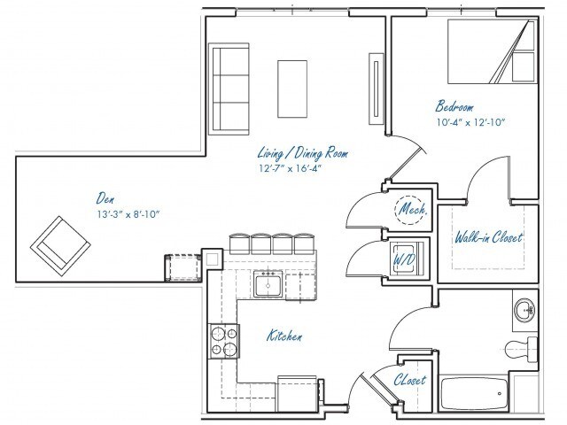 1 Bed, 1 Bath, 695 sq ftModel Gallery