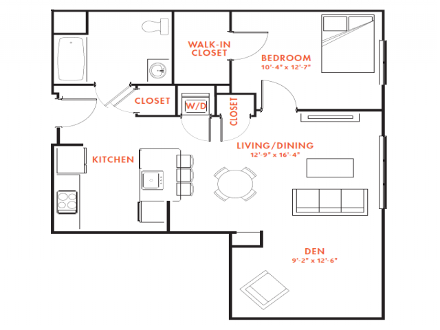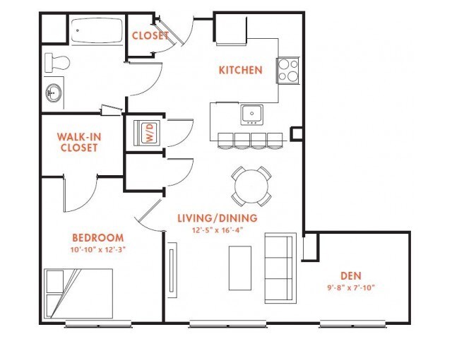 Apartment Model: 1-A1D1 Bedroom, 1 Bath, 735 sq ftUnavailable![]()
