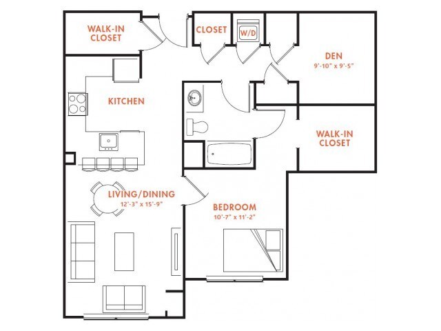 Apartment Model: A1A11 Bedroom, 1 Bath, 695 sq ftUnavailable![]()