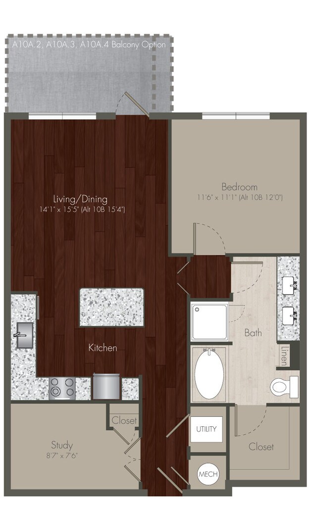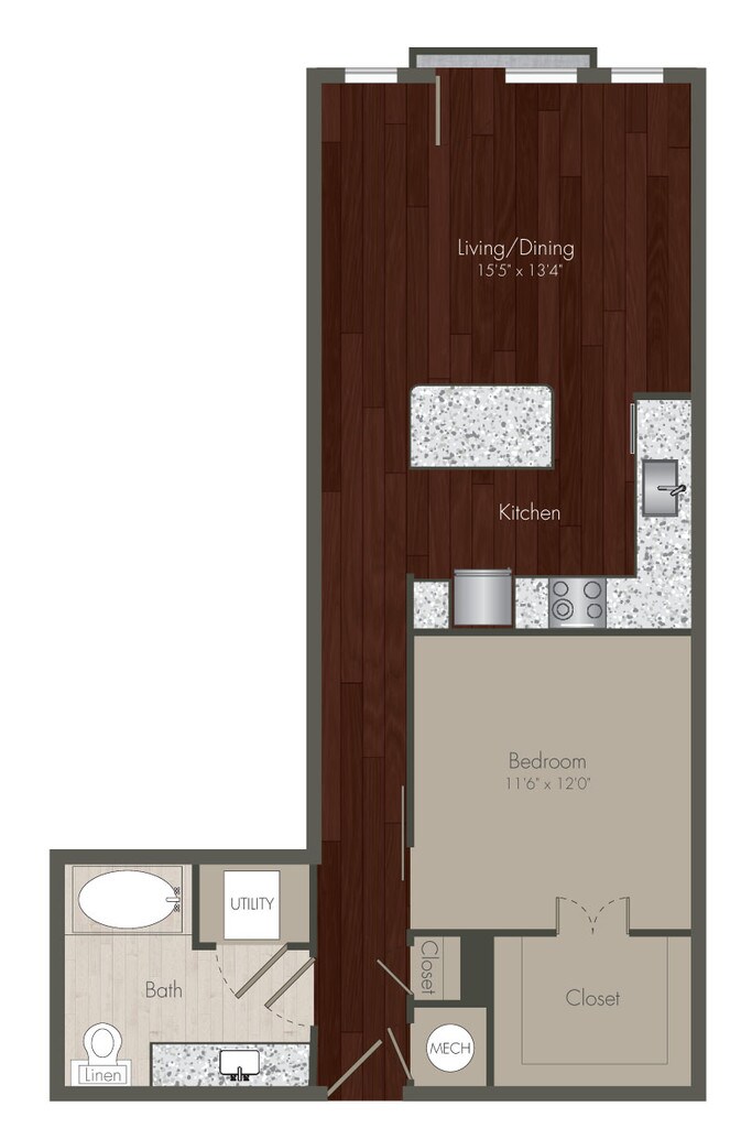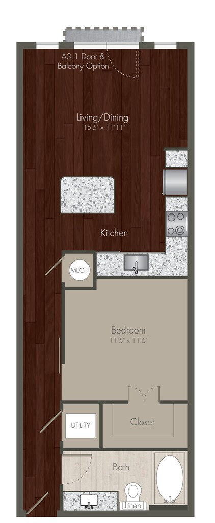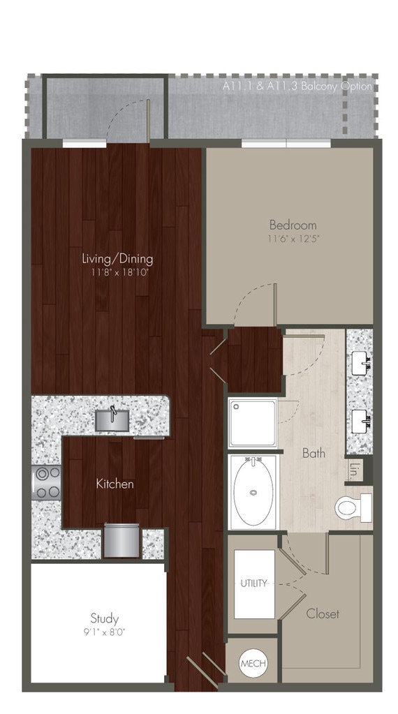 Studio, 1 Bath, 580 sq ftModel Gallery