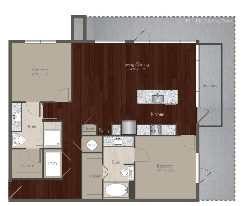1 Bed, 1 Bath, 895 sq ftAvailable NowModel Gallery