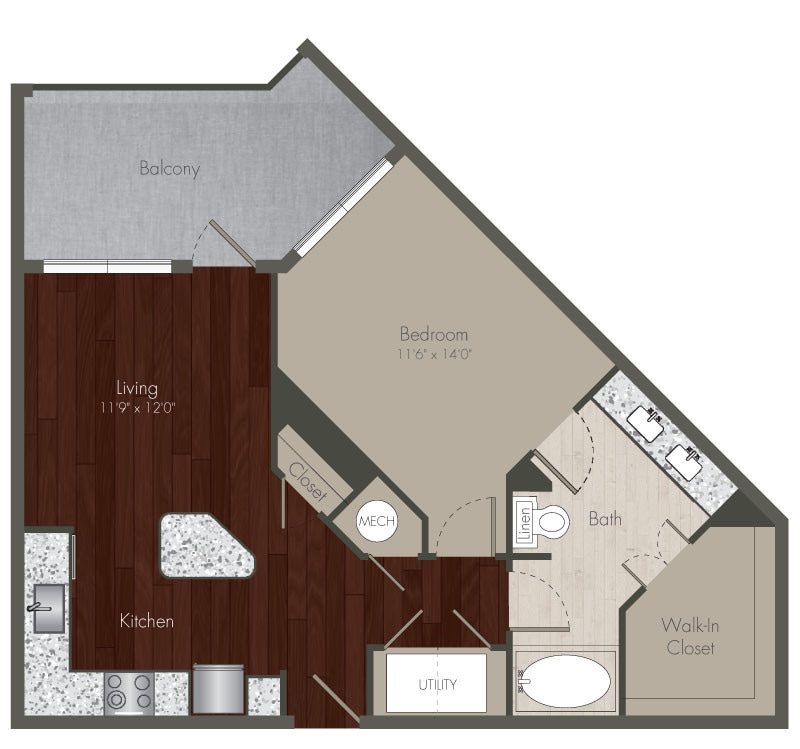 A7 - Floorplan 1 Apartment Unit: 615Apartment Model: A7$1,9501 Bedroom, 1 Bath, 780 sq ftAvailable NowFloorplan A11