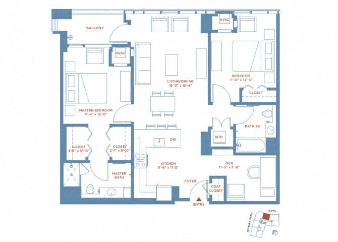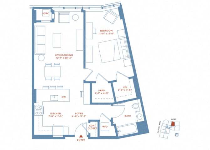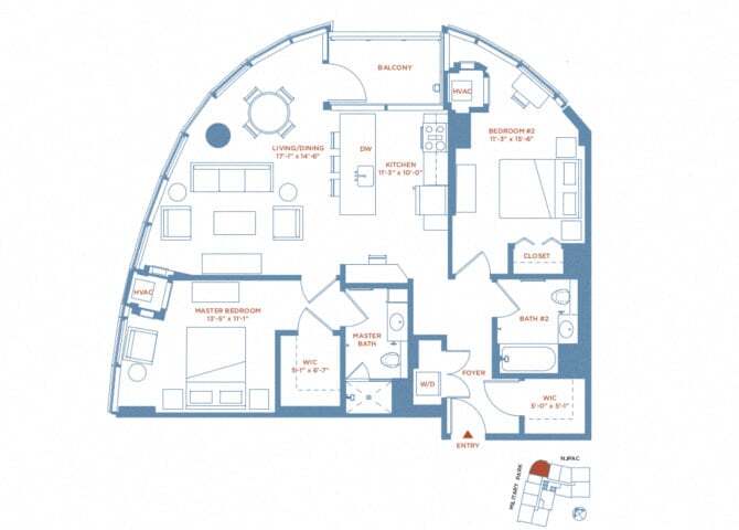 1 Bed/1 Bath - Floorplan 1 Apartment Unit: 1511Apartment Model: 1 Bed/1 Bath$2,9601 Bedroom, 1 Bath, 768 sq ftAvailable Now1 Bed/1 Bath Penthouse