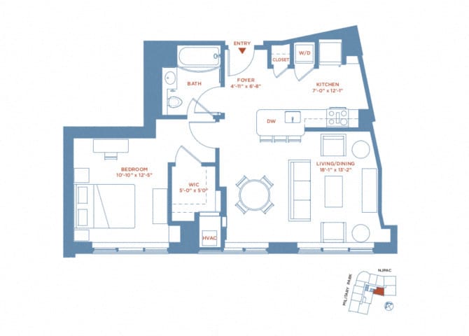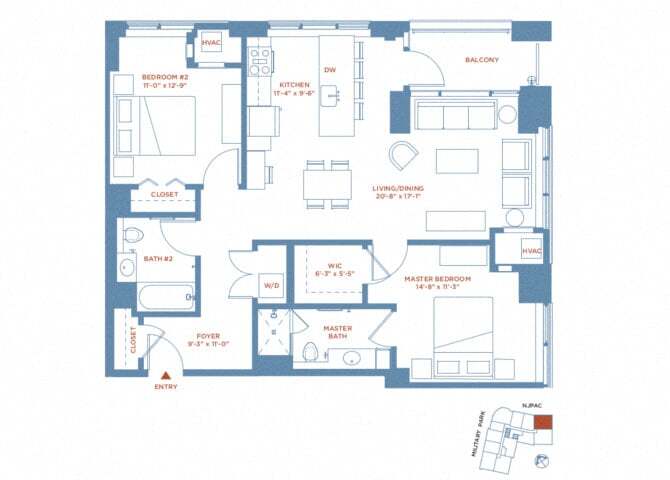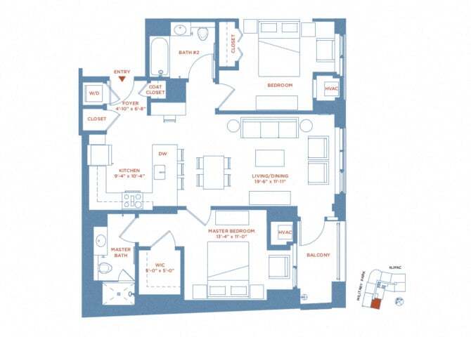 A symbol of Newark downtown revival, One Theater Square is a brand-new, 22-story tower with sweeping city views and a dynamic location. Each spacious, one-, two-, and three-bedroom apartment features must-have details like soaring ceilings, over-sized windows and hardwood floors. Amenities include 24-hour concierge services, a beautiful demonstration kitchen with fireplace and an outdoor terrace with multiple lounge areas. Just steps away from the famed New Jersey Performing Arts Center (NJPAC), One Theater Square is located within minutes to the redesigned Military Park, Whole Foods and a variety of great restaurants and retailers. The price shown reflects Base Rent only. Residents are responsible for additional required fees, including but not limited to an application fee, security deposit, community amenity fee, and utility charges. These fees are assessed per applicant or per unit as applicable and may vary based on usage or lease terms. Please consult a leasing agent for a comprehensive list of all required, optional, and situational fees.