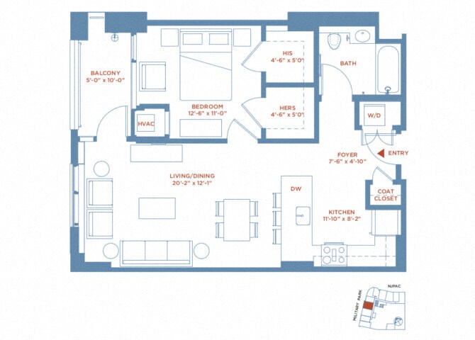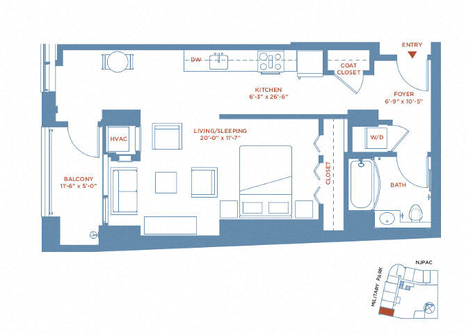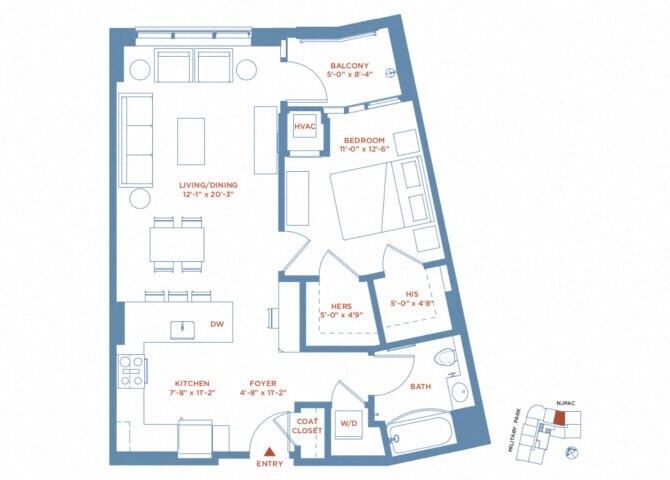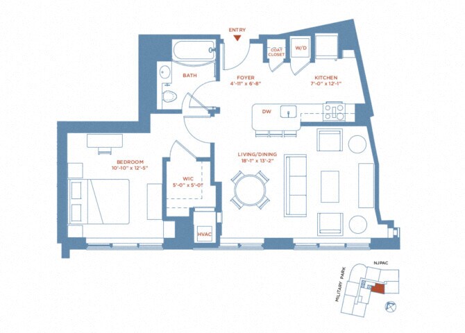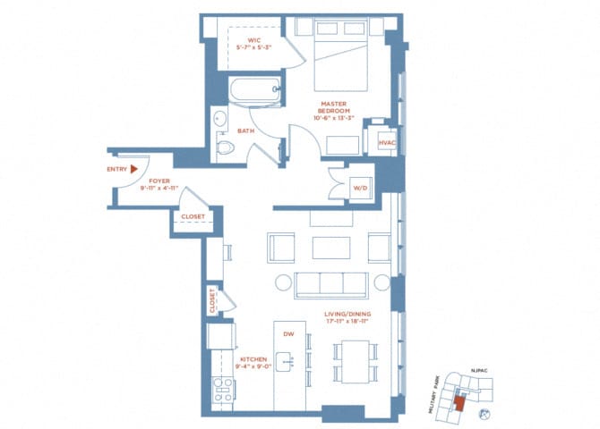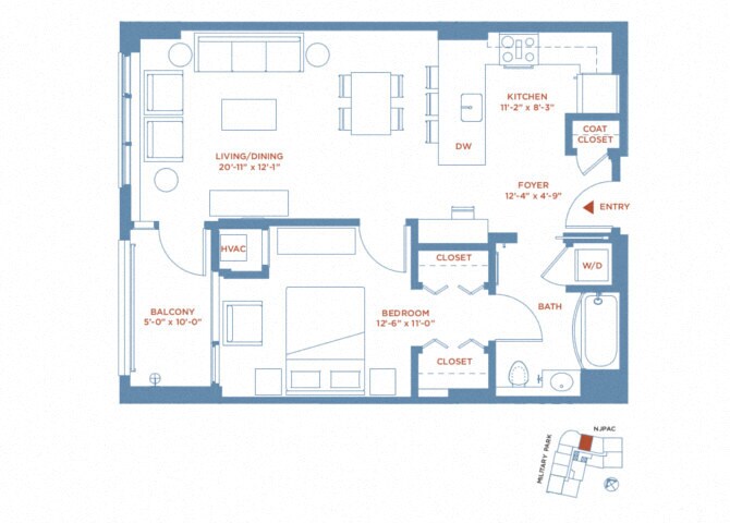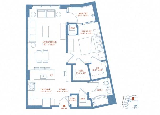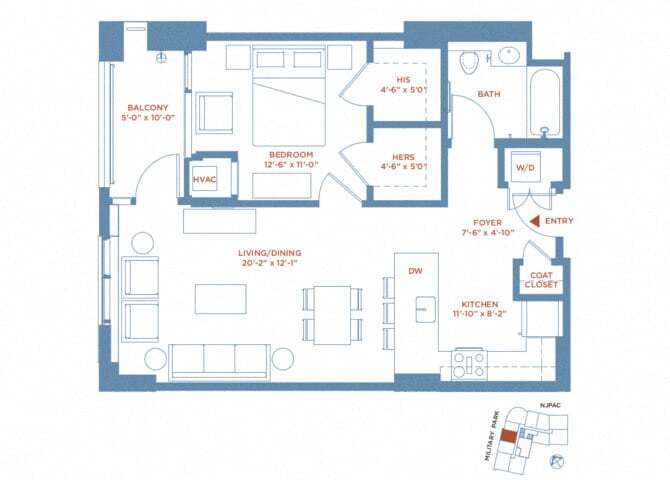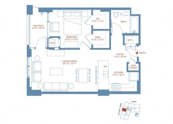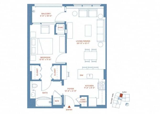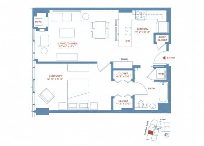 1 Bed/1 Bath - Floorplan 1 1 Bed/1 Bath