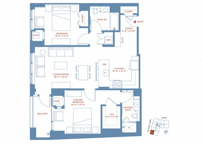Apartment Model: 1 Bed/1 BathFrom $2,9601 Bedroom, 1 Bath, 768 sq ftAvailable Now![]()