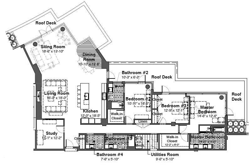 Apartment Model: Three Bedroom, Four Bath3 Bedroom, 4 Bath, 2646 sq ftUnavailableThree Bedroom, Four Bath - Floorplan 1 4 Bedrooms