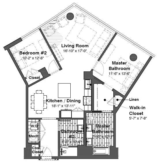 2 Beds, 2 Baths, 1154-1707 sq ftLargest 2 BedroomThis is the largest 2 Bedroom at this PropertyModel Gallery