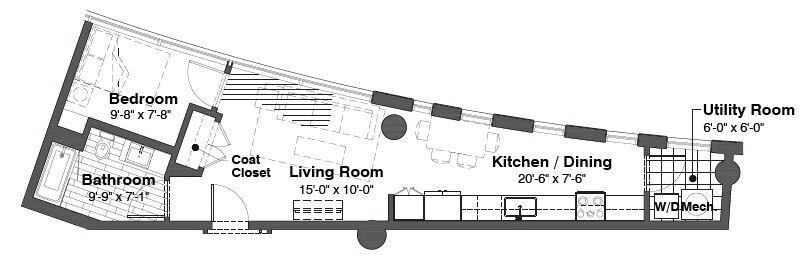 Apartment Model: Studio, One BathStudio, 1 Bath, 512-539 sq ftUnavailableStudio, One Bath - Floorplan 1 1 Bedroom