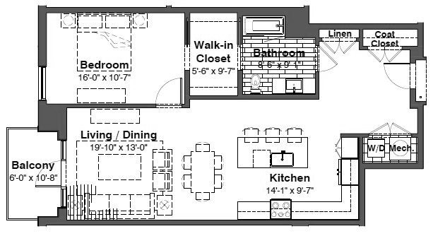 Apartment Model: One Bedroom, One Bath1 Bedroom, 1 Bath, 615-1041 sq ftUnavailableOne Bedroom, One Bath - Floorplan 1 2 Bedrooms