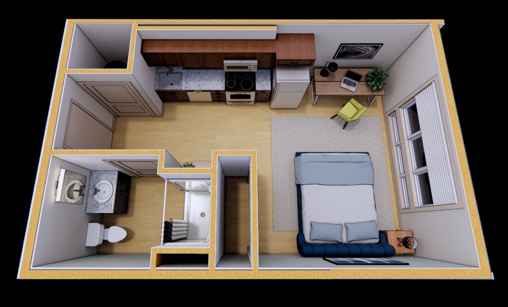 Studio B - Floorplan 1 Apartment Unit: 211Apartment Model: Studio B$1,750Studio, 1 Bath, 366 sq ftAvailable August 1, 2026Apartment Unit: 307Apartment Model: Studio B$1,750Studio, 1 Bath, 366 sq ftAvailable August 1, 20261 Bedroom