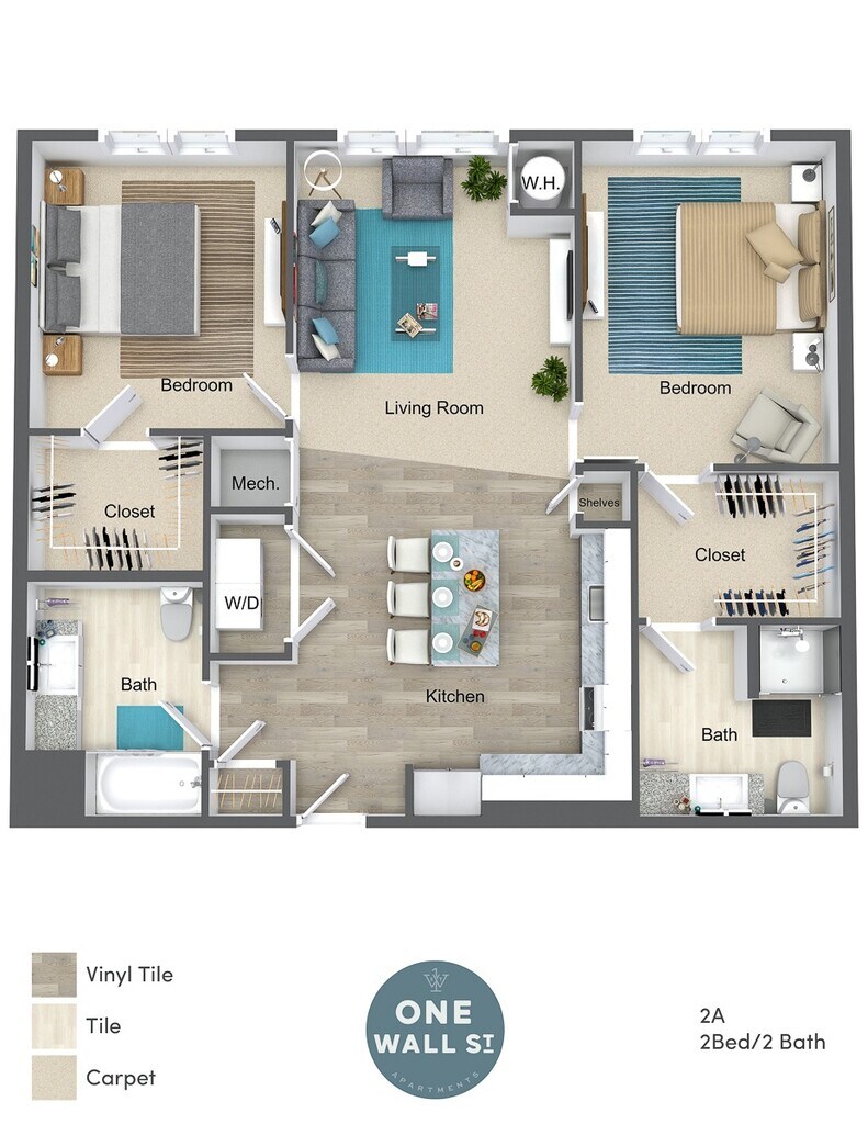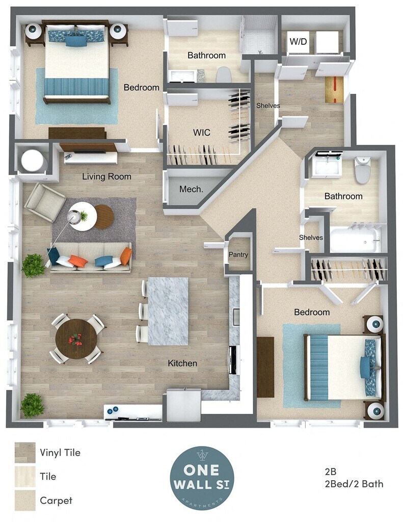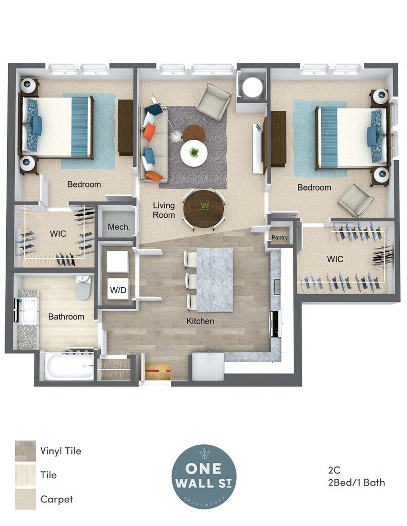 Two Bed Two Bath - Floorplan 1 Apartment Unit: 201Apartment Model: Two Bed Two Bath$2,7692 Bedroom, 2 Bath, 1160 sq ftAvailable November 18, 2025![]()