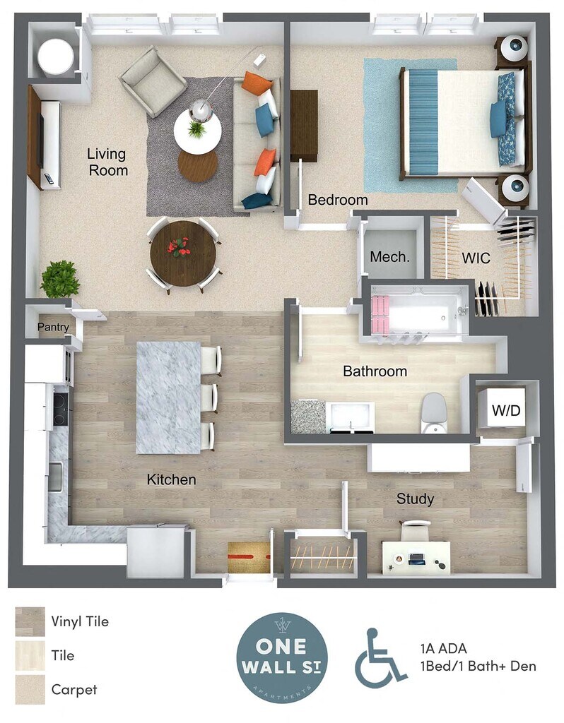 One Bed One Bath with Den - Floorplan 1 Apartment Unit: 514Apartment Model: One Bed One Bath with Den$2,4261 Bedroom, 1 Bath, 815 sq ftAvailable Now![]()