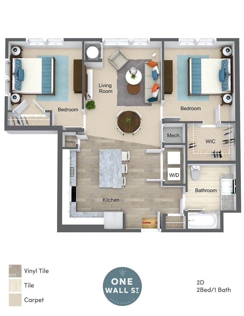 Two Bed Two Bath - Floorplan 1 Apartment Unit: 203Apartment Model: Two Bed Two Bath$2,3902 Bedroom, 2 Bath, 1069 sq ftAvailable Now![]()