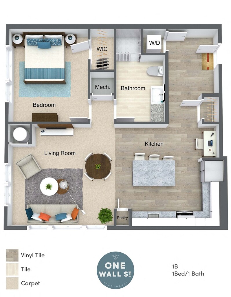 One Bed One Bath with Den - Floorplan 1 Apartment Unit: 514Apartment Model: One Bed One Bath with Den$2,0331 Bedroom, 1 Bath, 815 sq ftAvailable Now![]()