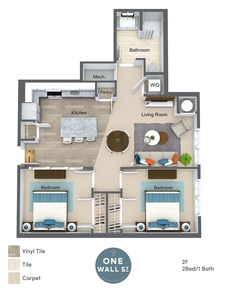 1 Bedroom to 2 Bedroom Apartments at One Wall St currently range from $2,013 to $2,399