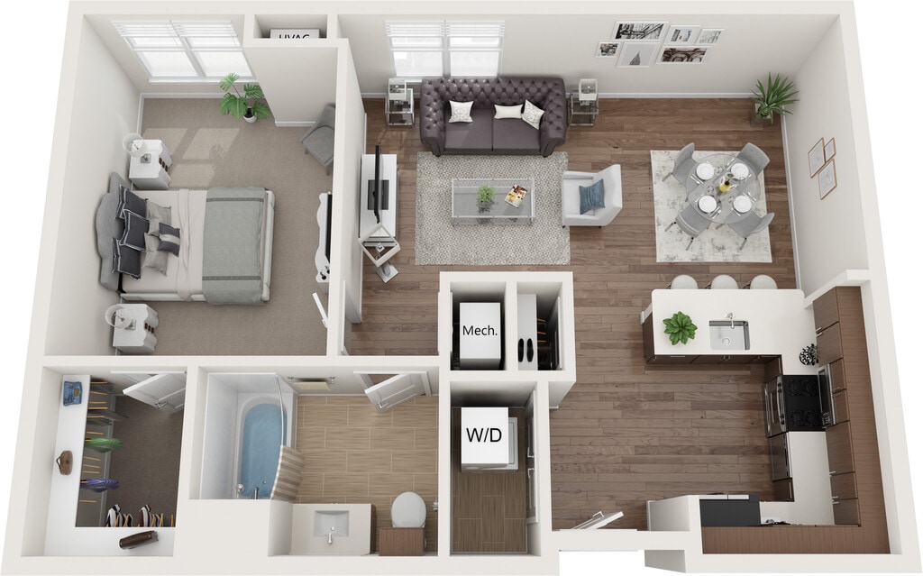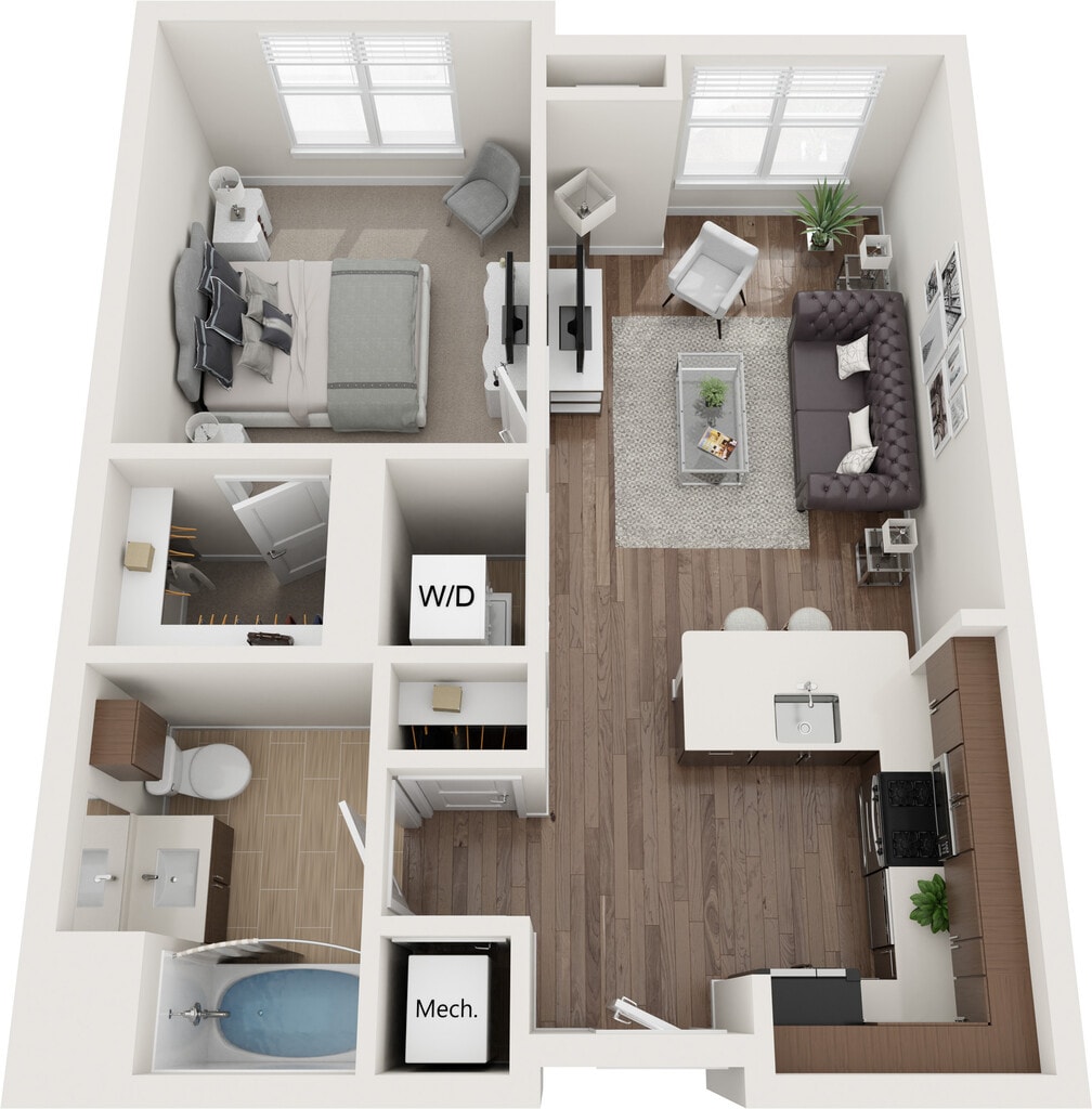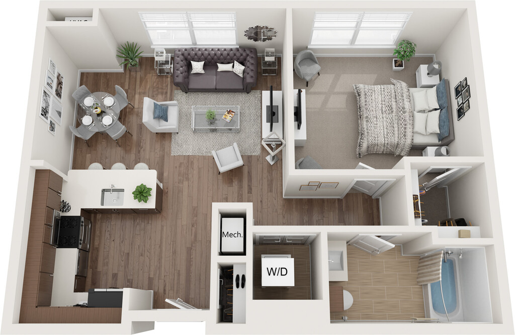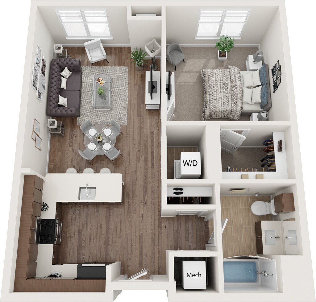 1 Bed, 1 Bath, 708 sq ftAvailable NowModel Gallery