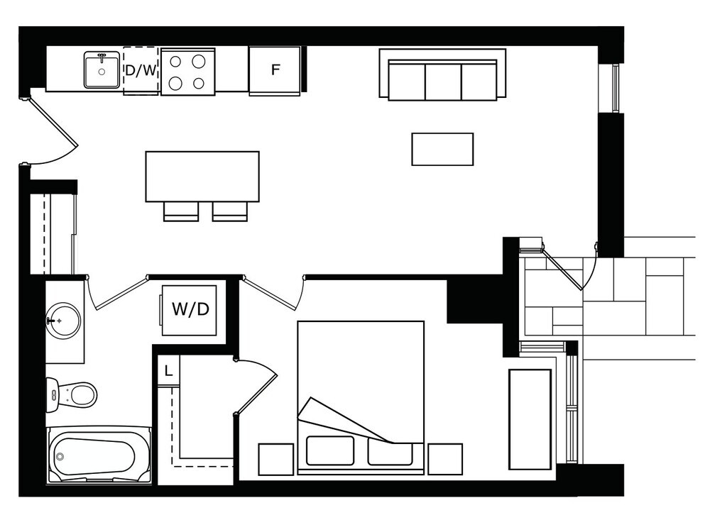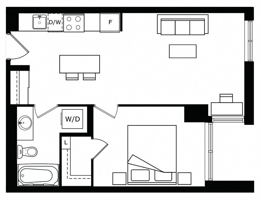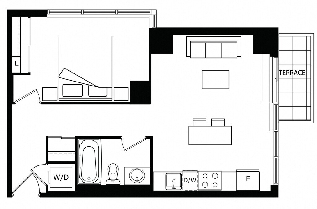 Studio 1 Bath - Floorplan 7 Apartment Unit: 1007Apartment Model: Studio 1 Bath$1,825Studio, 1 Bath, 323 sq ftAvailable Now![]()