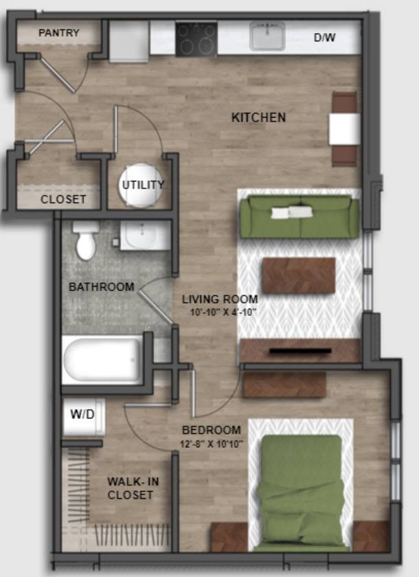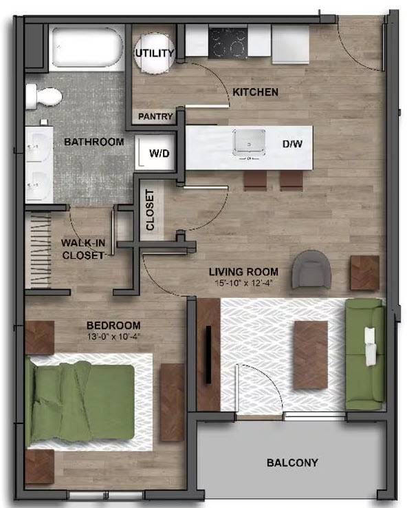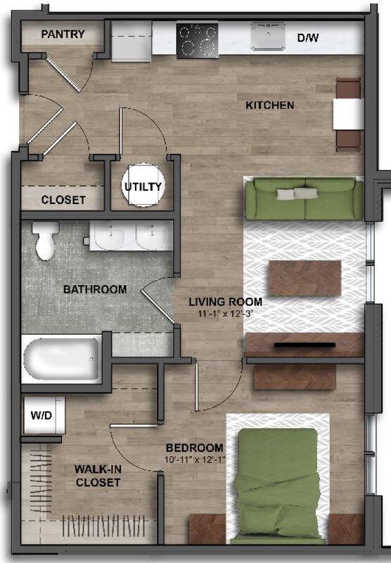 1 Bed, 1 Bath, 617 sq ftModel Gallery