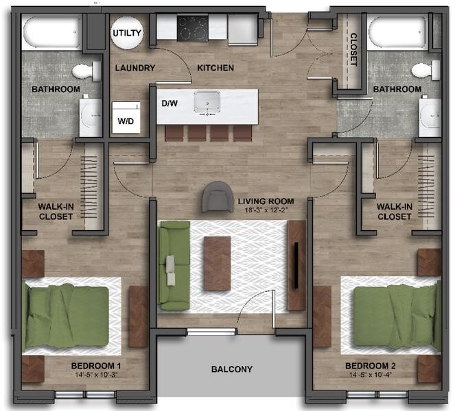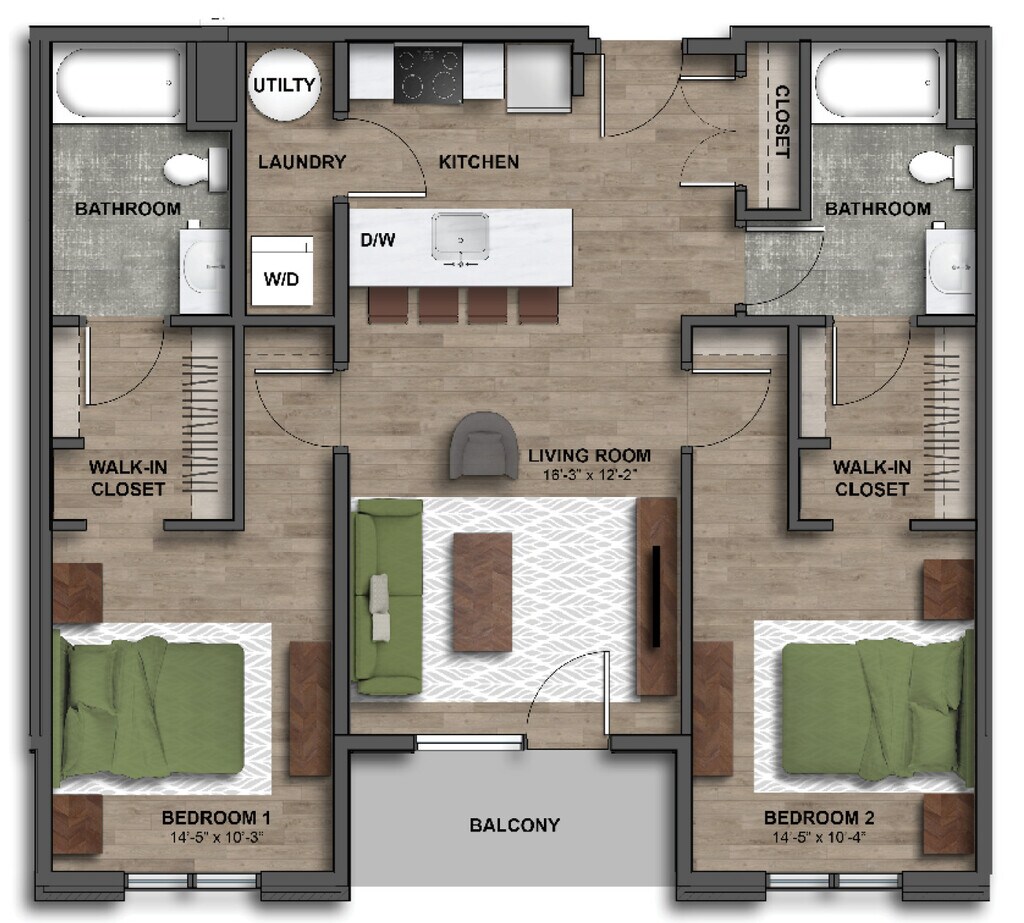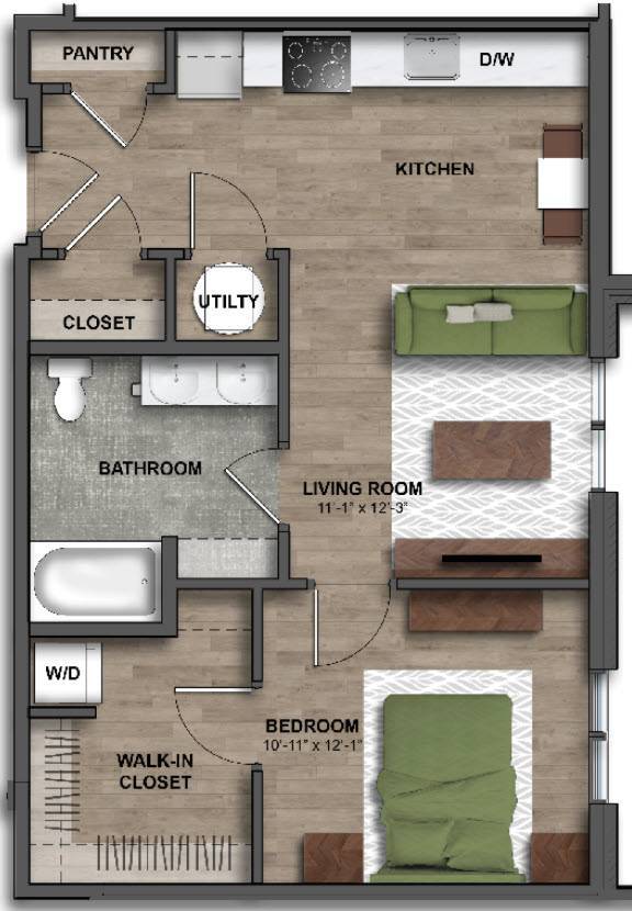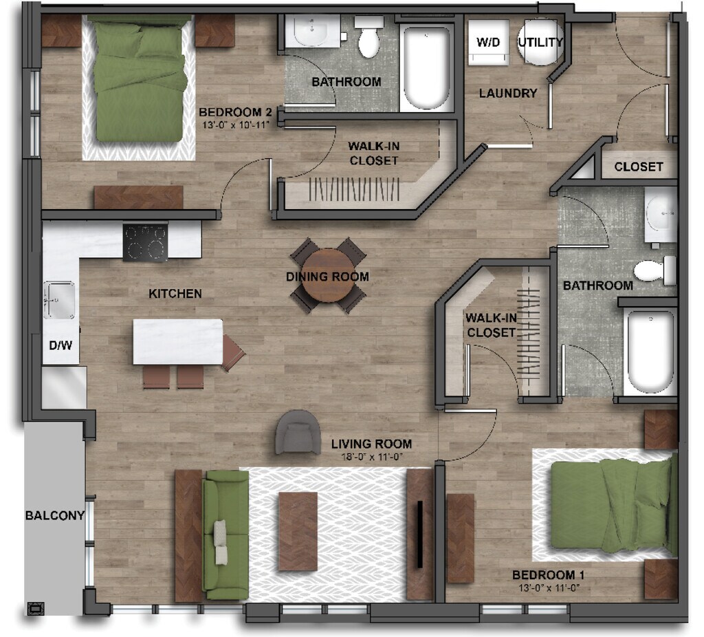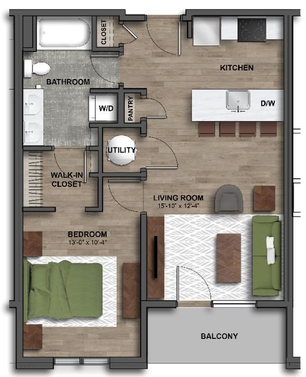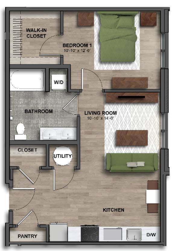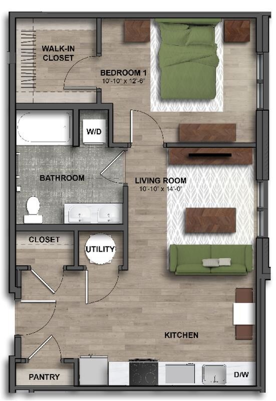 1 Bed, 1 Bath, 625 sq ftModel Gallery