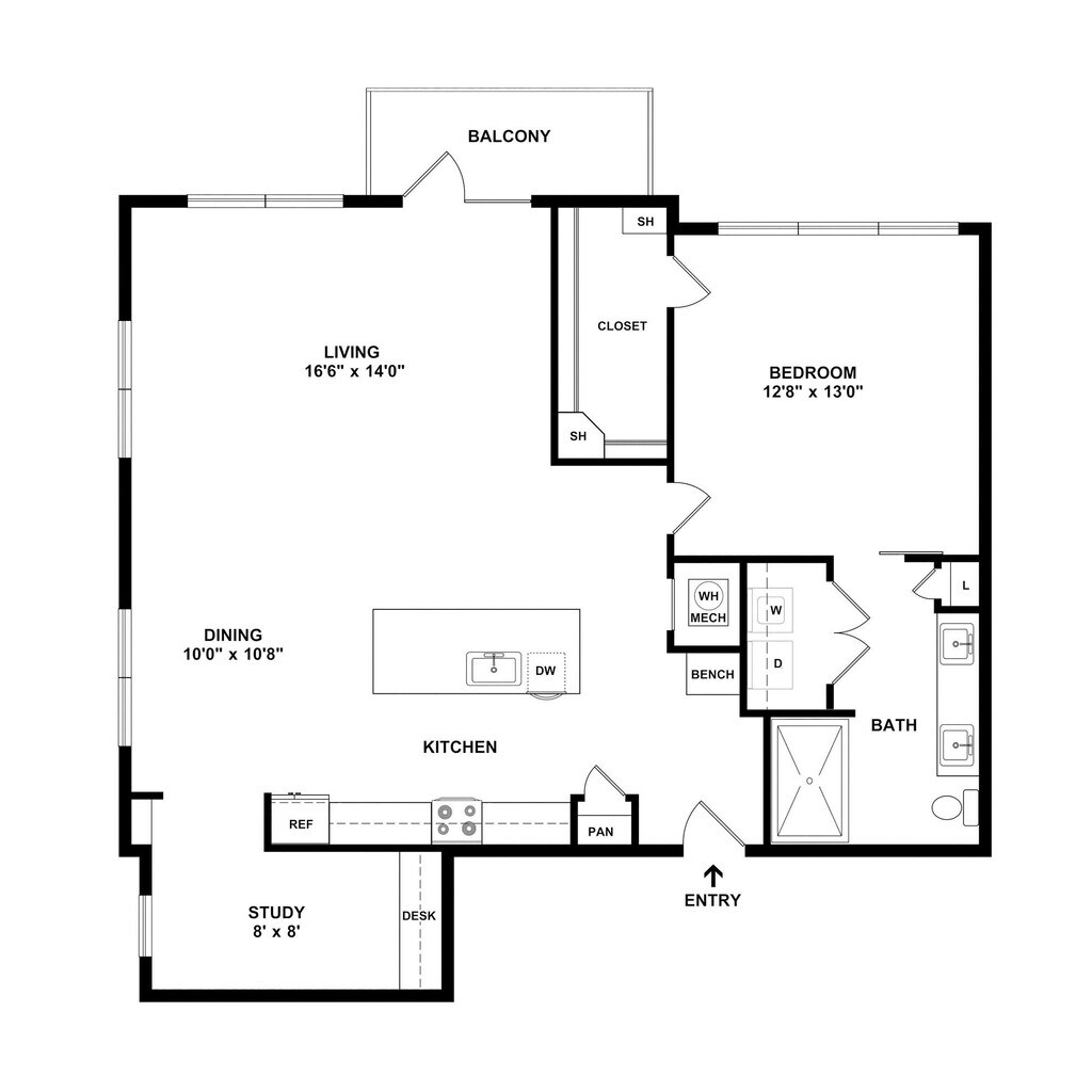 1 Bed, 1 Bath, 785 sq ftAvailable NowModel Gallery